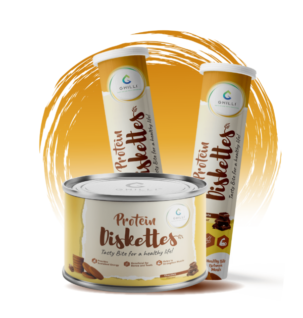 A snack that has convenience, taste, health, and of course, Protein in every bite! Ghilli Protein Diskettes provides High Protein and essential Nutrients to help fulfill your daily nutritional needs in a convenient manner. Protein Diskettes contain casein which is a class 1 Protein. Casein provides all essential amino acids, required for good health. Therefore, having Ghilli Protein diskettes in between meals is a good choice for everyone in the family.